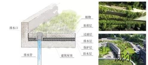 海綿城市建設(shè)措施不僅在于地面,屋頂和屋面雨水的處理也同樣重要。在承重、防水和坡度合適的屋面打造綠色屋頂,利于屋面完成雨水的減排和凈化。對于不適用綠色屋頂?shù)奈菝妫部梢酝ㄟ^排水溝、雨水鏈等方式收集引導(dǎo)雨水進行貯蓄或下滲.