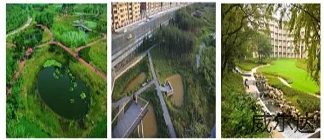 其主要作用是延緩短時間內(nèi)形成的雨水徑流量。例如,通過微地形調(diào)節(jié),讓雨水慢慢地匯集到一個地方,用時間換空間。通過“滯”,可以延緩形成徑流的高峰。具體形式總結(jié)為三種:雨水花園、生態(tài)滯留池、滲透池、人工濕地。