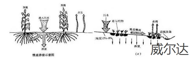 土壤滲濾凈化:大部分雨水在收集時同時進行土壤滲濾凈化,并通過穿孔管將收集的雨水排入次級凈化池或貯存在滲濾池中;來不及通過土壤滲濾的表層水經(jīng)過水生植物初步過濾后排入初級凈化池中。