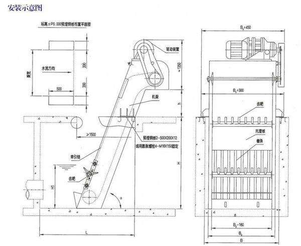 回轉(zhuǎn)式機械格柵除污機,又稱回轉(zhuǎn)式固液分離機,是由犁形耙齒按一定的數(shù)量和裝配順序排列在耙齒軸上,組成耙齒鏈,根據(jù)過水流量和需要分離的固物顆粒大小,選用不同柵隙的耙齒。將本設備安裝在泵站或水處理系統(tǒng)的入口處,當傳動系統(tǒng)帶動耙齒鏈自下向上運動時,耙齒同時攜帶懸浮物從液體中分離出來,液體則在間隙中流過,耙齒軸轉(zhuǎn)動到上部定點后,改變運動方向,自上而下運動,由于物料的自重從耙齒上自行脫落,當耙齒軸從反面轉(zhuǎn)到設備底部時,又開始由下向上運動,這樣循環(huán)往復連續(xù)運行,不斷的從水中清理雜質(zhì),達到固液分離目的,整個過 程可以是連續(xù)的也可以是間歇的。