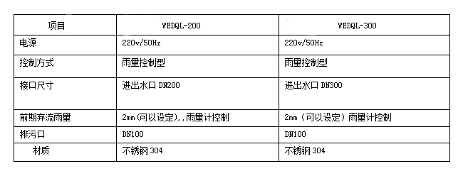 該型雨水棄流裝置是由雨量計、PLC控制器、不銹鋼分流裝置組成,可以精確地控制降雨前期污染較嚴(yán)重雨水的自動排放,可以對收集雨水進(jìn)行過濾、排污,實(shí)現(xiàn)對后期更干凈雨水的收集。裝置可以完成對降雨量、棄流量的監(jiān)測,降雨頻率的監(jiān)測,真正做到收集理想的雨水。