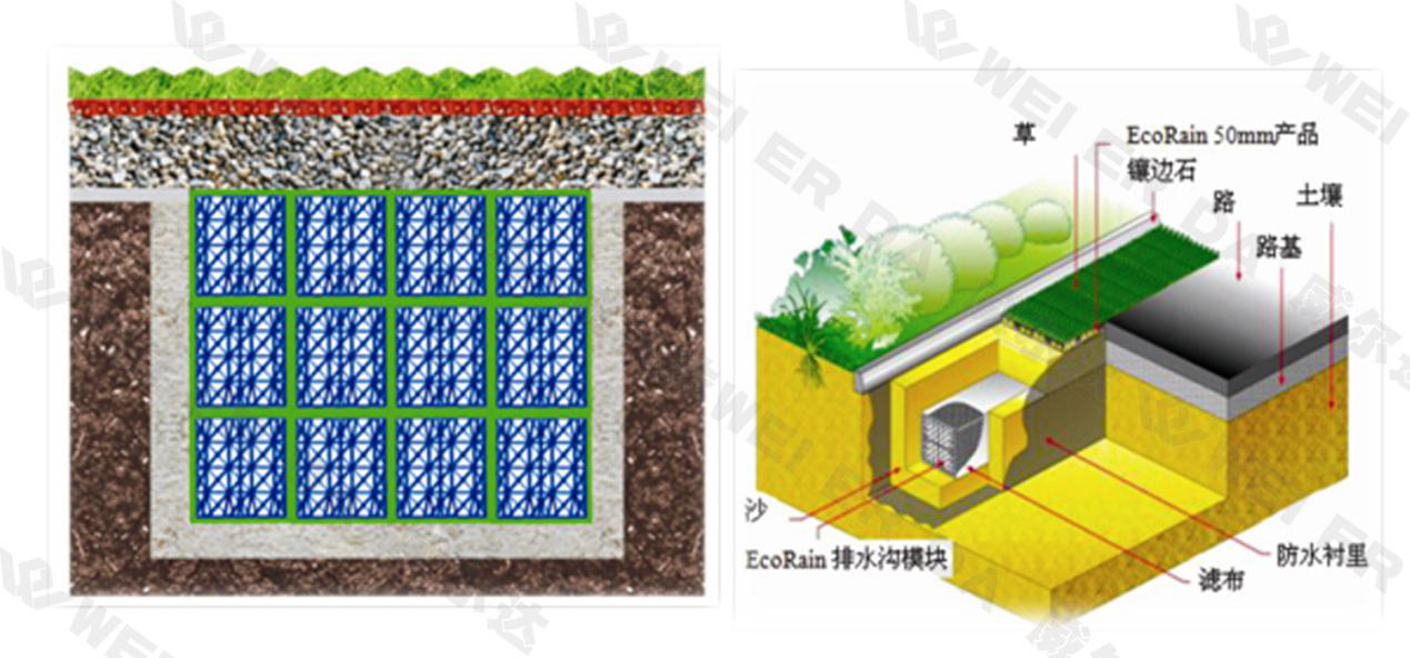 模塊率高,95%的鏤空空間可以實(shí)現(xiàn)更有效率的蓄水。快速的安裝,節(jié)約時(shí)間,提高工期。